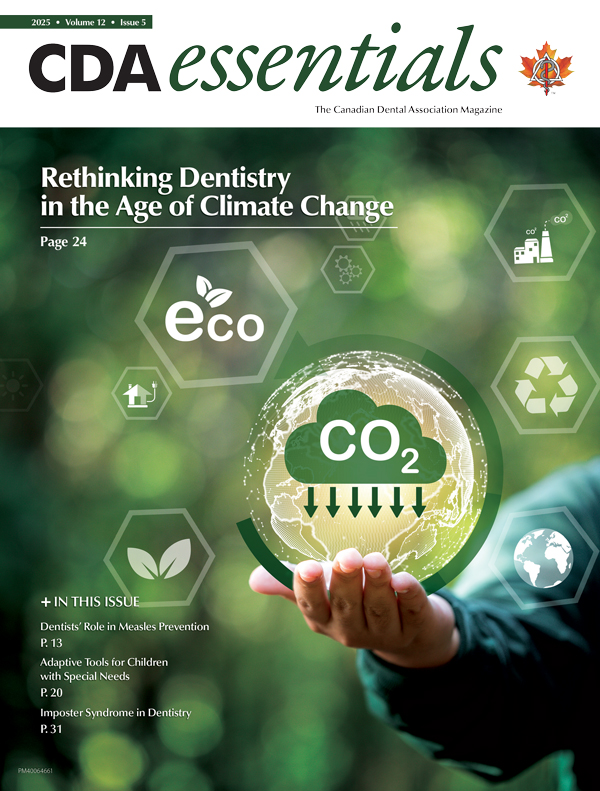 CDA Essentials is the official print publication of CDA, providing dialogue between the national association and the dental community. It is dedicated to keeping dentists informed about news, issues and clinically relevant information.